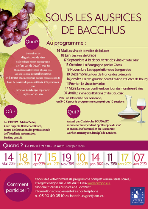 Le CEFPPA d'Illkirch et L'Oenomad vous proposent une série de soirées thématiques autours de régions viticoles